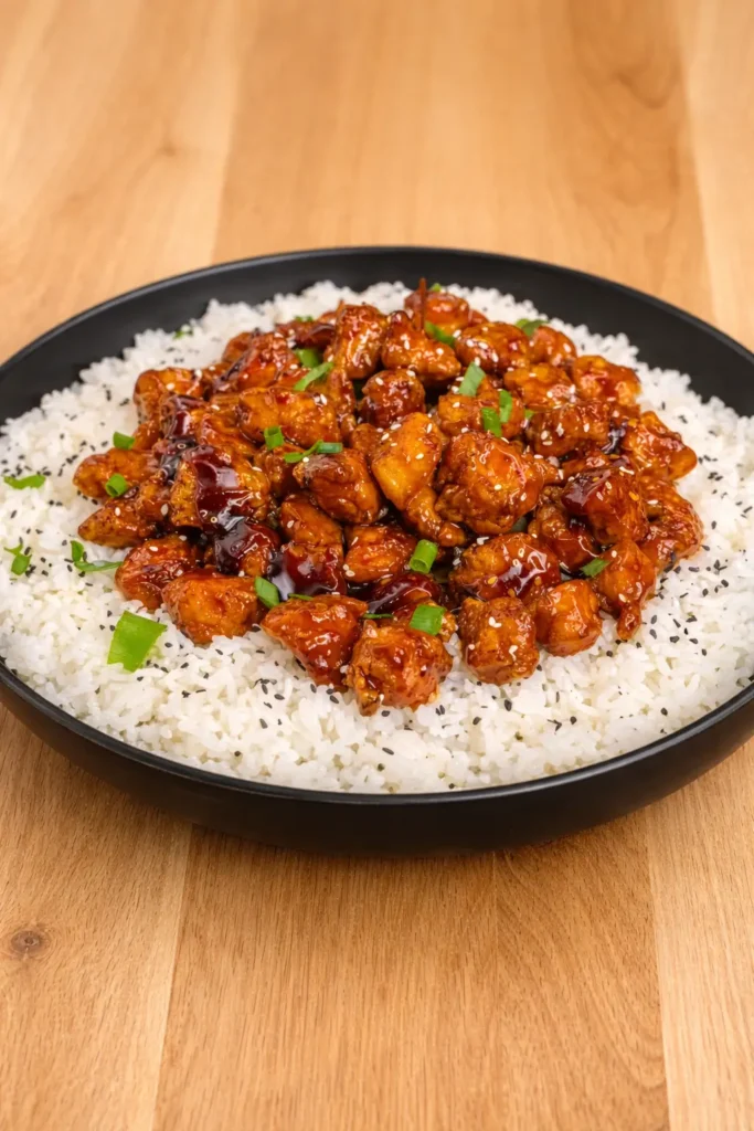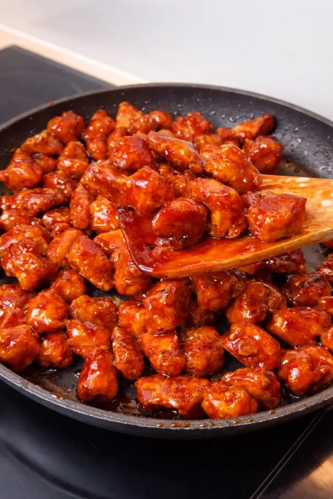 Finally, toss the crispy chicken in the sauce until every piece is coated. Serve with rice or your favorite sides.