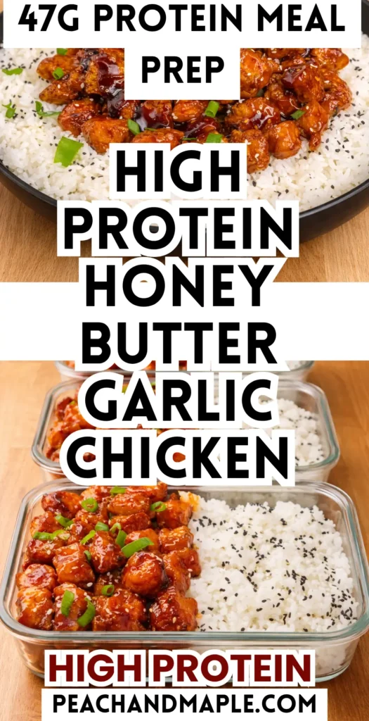 This easy & healthy honey butter garlic chicken is a high protein meal prep favorite. Crispy chicken coated in a sweet and savory garlic honey sauce, perfect for quick lunches or dinners all week long.