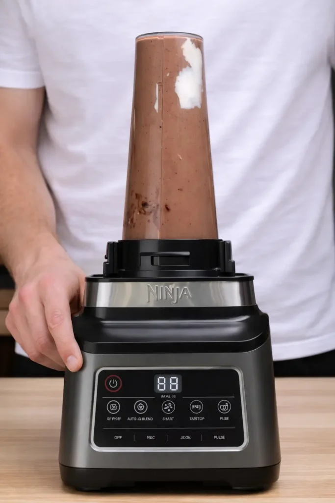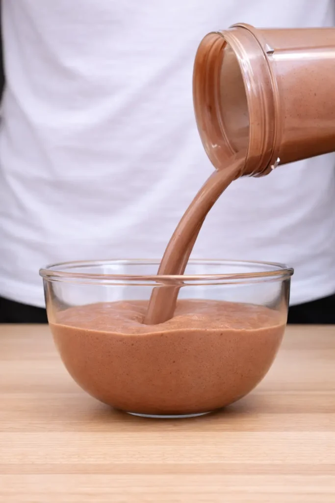 Blend on medium-high speed until the mixture is completely smooth and slightly thickened. It should look glossy and pourable, not foamy or grainy.