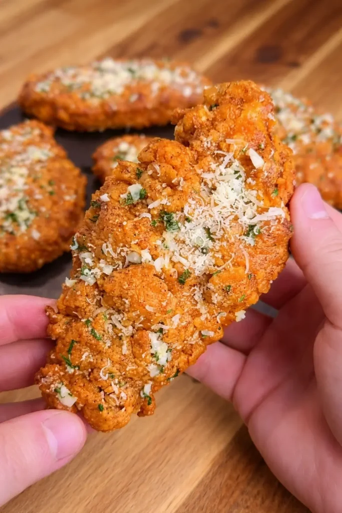 Golden, ultra-crispy on the outside and juicy inside, these Healthy Garlic Parmesan Chicken Tenders deliver bold garlic-butter flavor with a light, high-protein crunch you can feel good about.