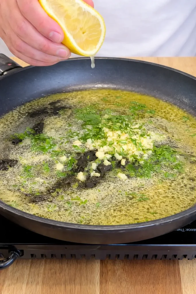 Make Garlic Butter In a pan over low heat, melt light butter. Add minced garlic, parsley, and lemon juice. Cook for 2 minutes until fragrant. Do not brown the garlic.