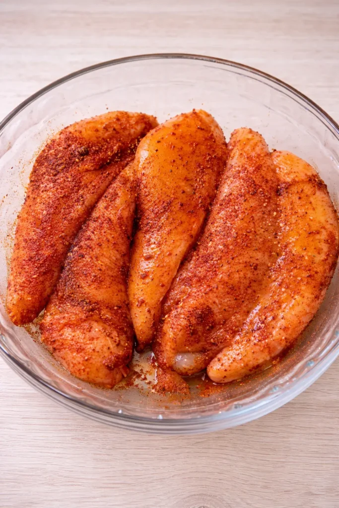Start by slicing your chicken breast into thin strips. Season them generously with smoked paprika, cayenne, garlic powder, salt, and pepper. This is where all that flavor starts.