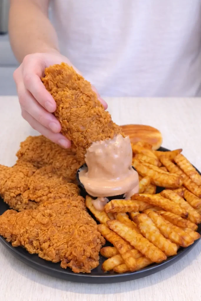 Serve your crispy chicken tenders with a side of seasoned fries and a generous scoop of that lighter Cane’s sauce. You can also add a fresh side salad or some steamed veggies if you want to balance things out.