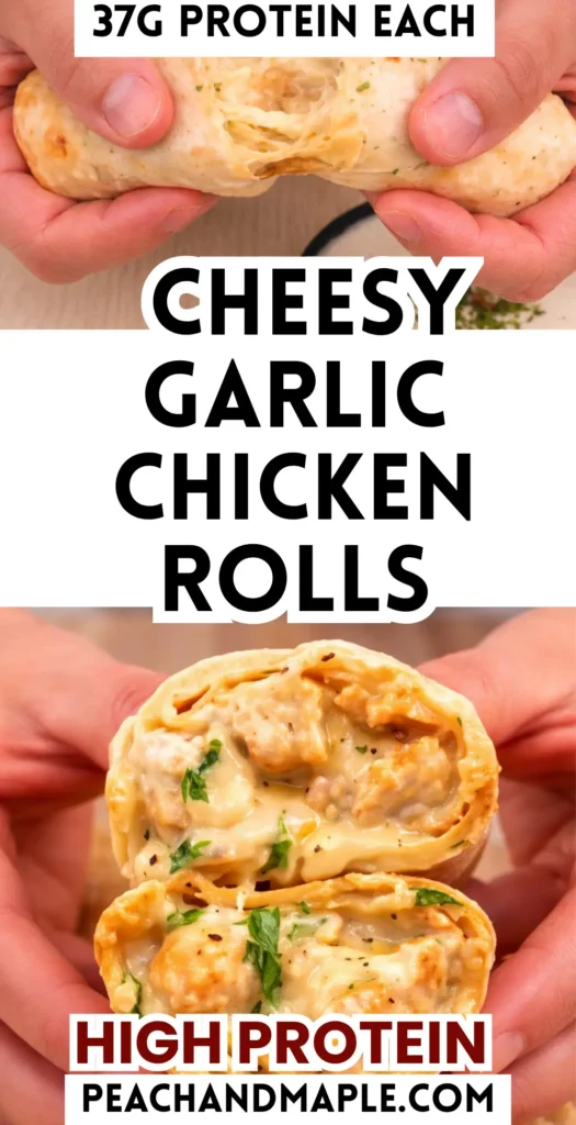 These High Protein Cheesy Garlic Chicken Rolls are perfect for freezer meal prep. Once cooked, wrap each roll in foil and place them in the freezer. They will keep well for several months.
