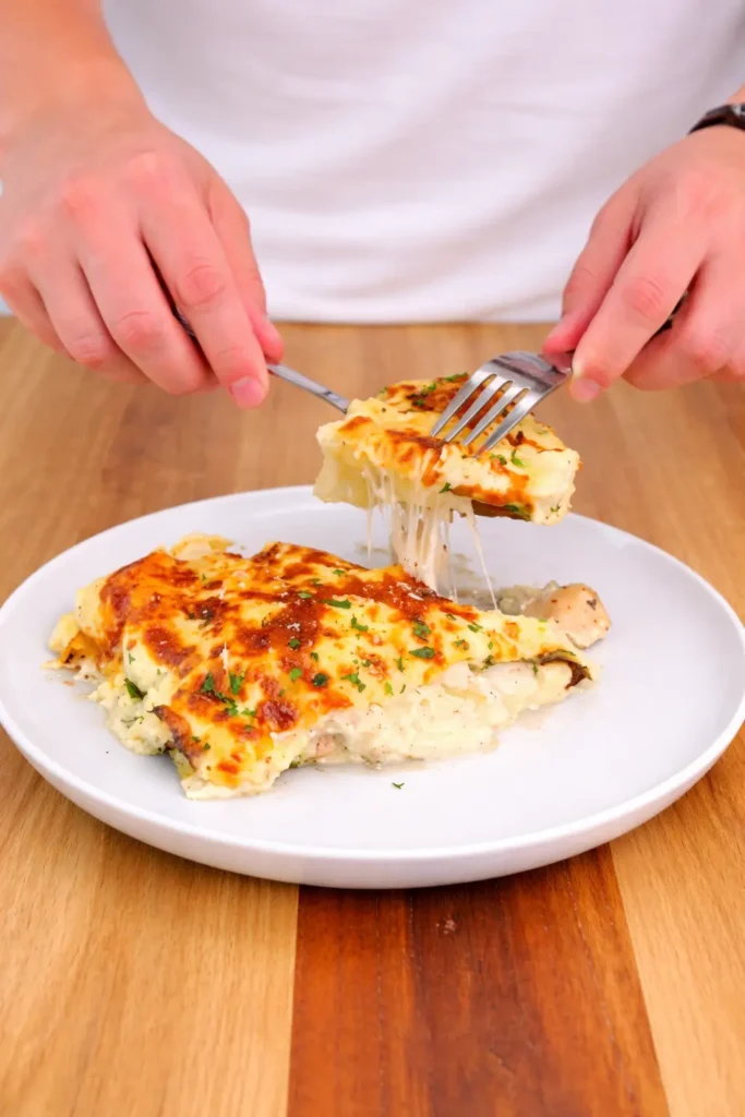 High protein chicken alfredo lasagna