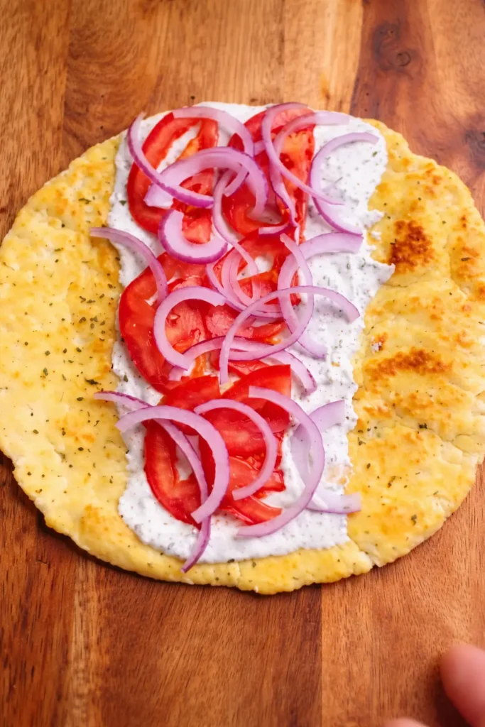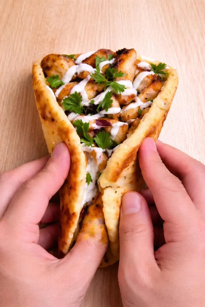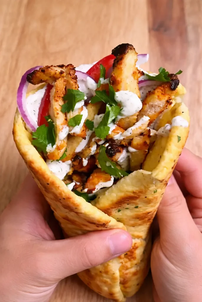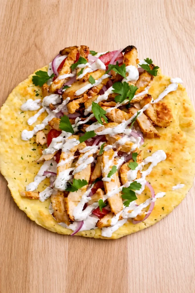 Between the chicken, yogurt flatbread, and creamy sauce, the protein adds up fast without needing any powders or complicated ingredients.