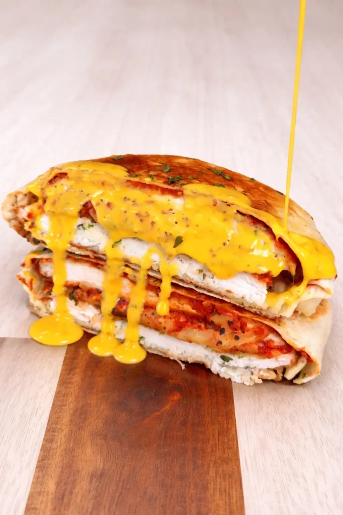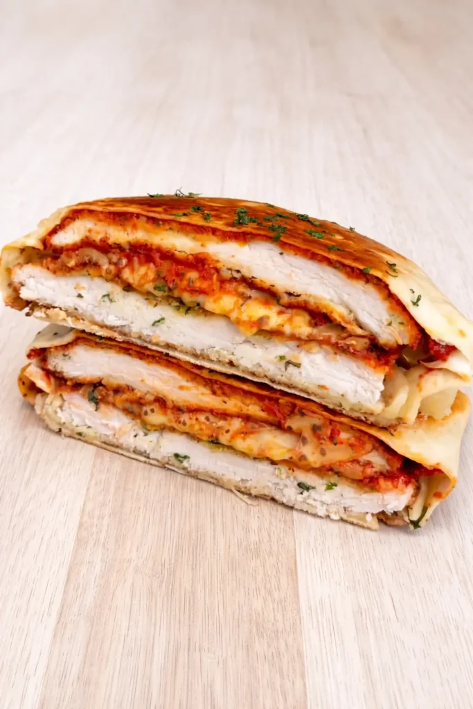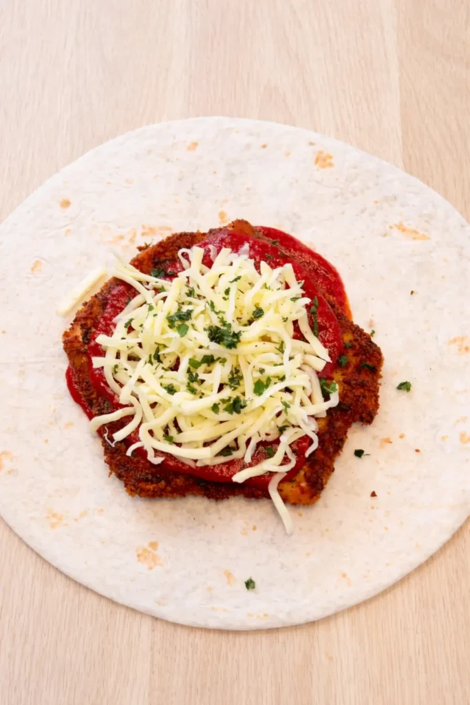 The best part is how simple it is to make. We are talking about crispy breaded chicken, warm marinara sauce, melty mozzarella, and a toasted tortilla that holds everything together .