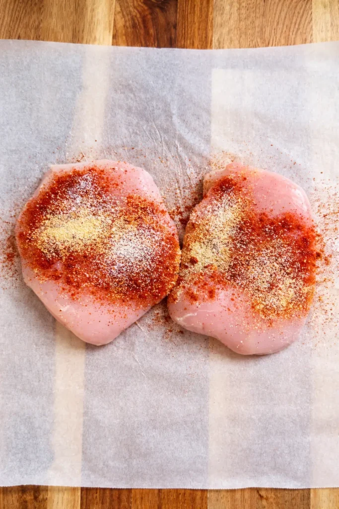 - Season the chicken with salt, onion powder, garlic powder, and Italian herbs.
