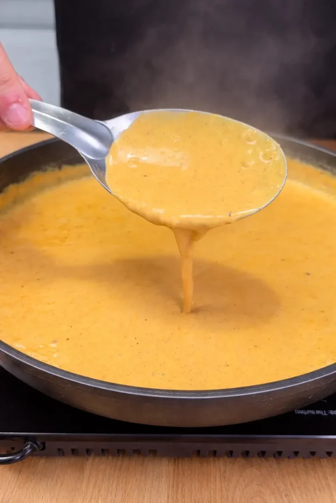 In the same pan, add the minced garlic and cook for about 30 seconds until fragrant. Pour in the evaporated milk, chicken stock powder, and smoked paprika. Stir everything together and bring it to a gentle simmer.