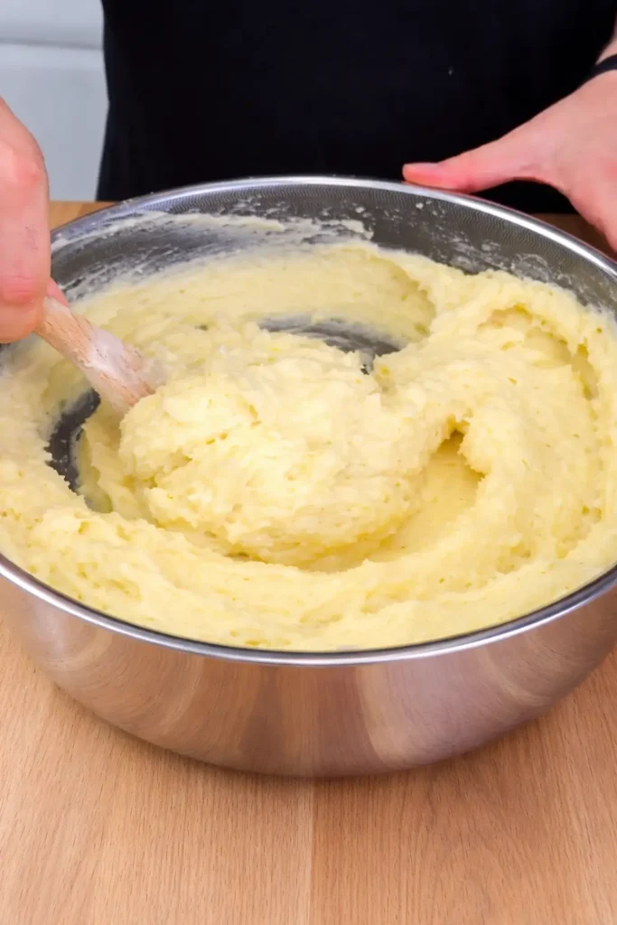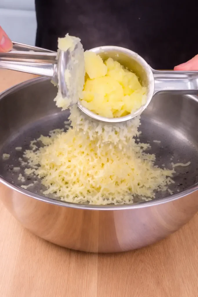 Once cooked, drain the potatoes and mash them until smooth. Stir in the blended cottage cheese, grated parmesan, salt, and garlic powder.