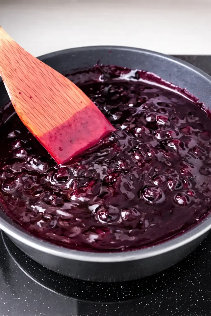 6. In a small pan over medium heat, cook blueberries with the cornflour mixture until thick and jam-like.