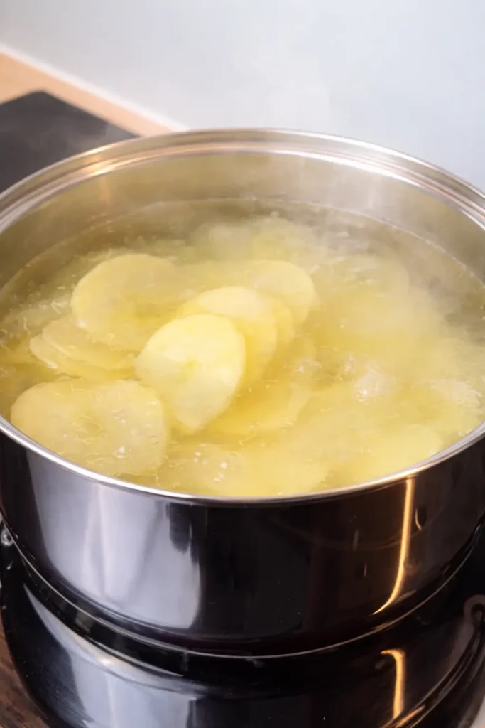 - Wash, peel, and thinly slice the potatoes.