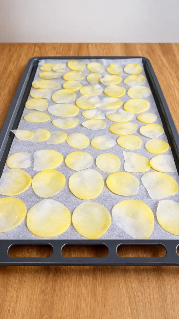- Soak slices in ice water for 10–15 minutes, then drain.