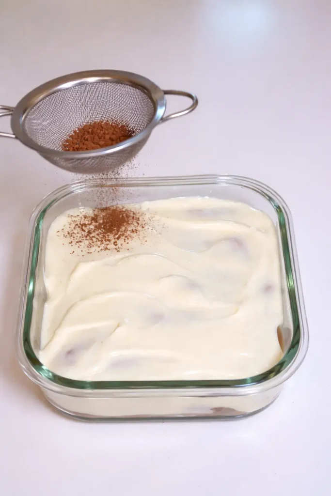 - Repeat layers and dust with cocoa powder.