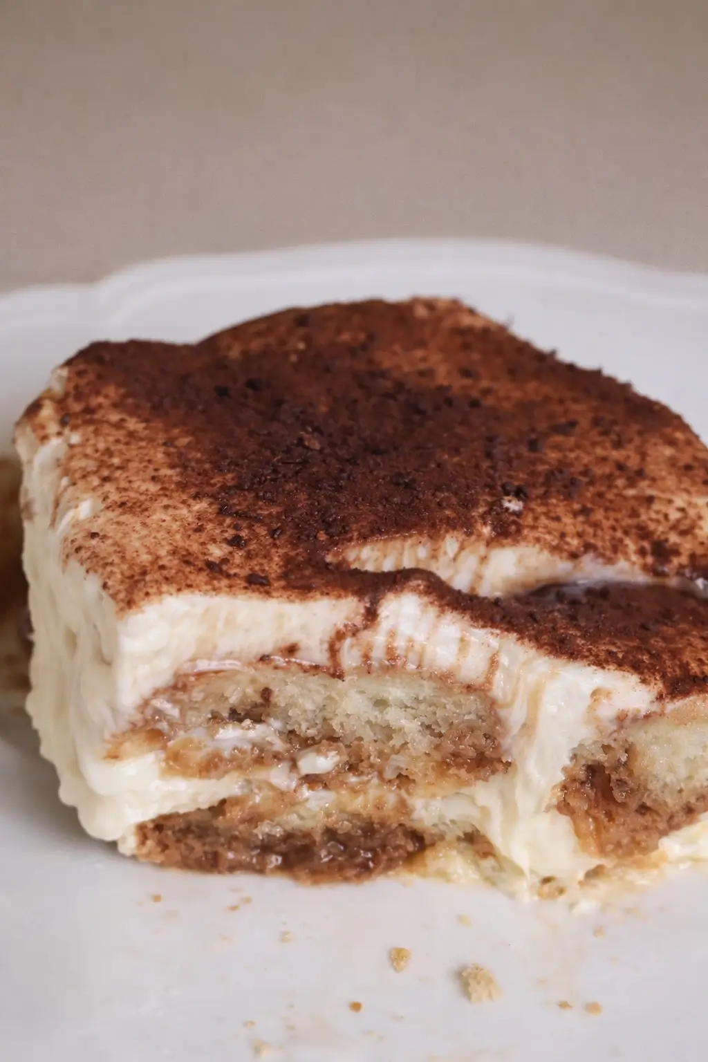 This dessert looks just as good as it tastes. Clean layers. Soft coffee-dipped ladyfingers. A thick, spoonable cream that sets up beautifully in the fridge and slices like a dream when chilled overnight.
