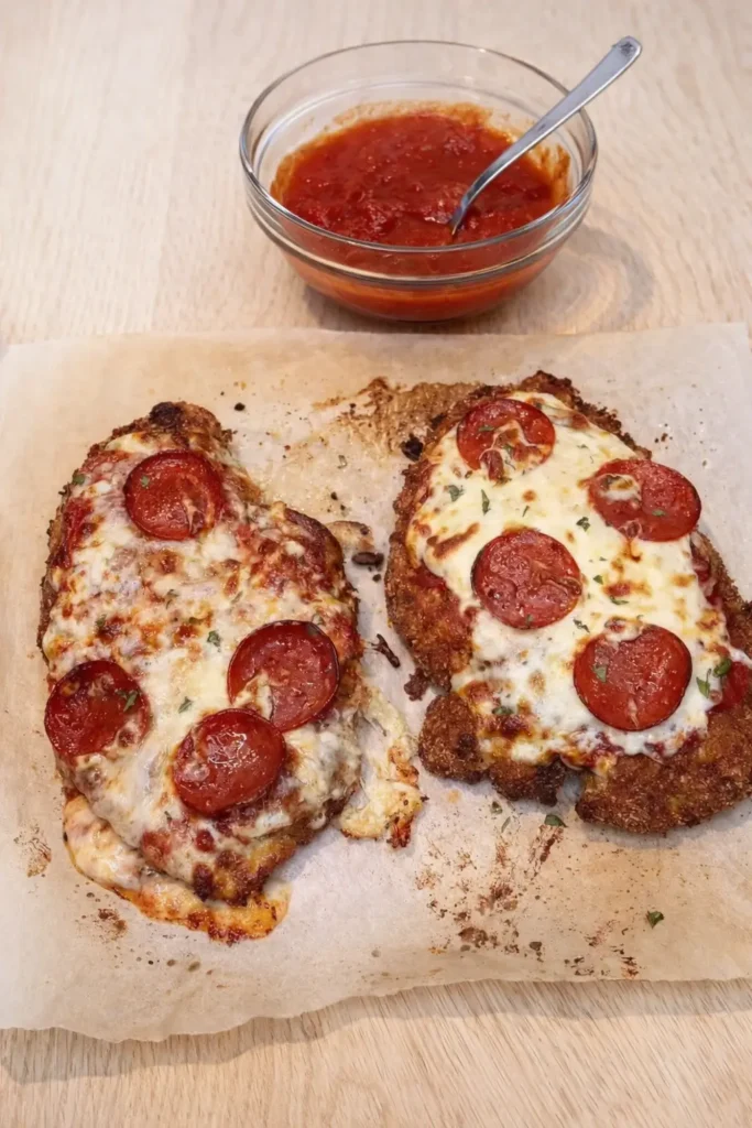 If you have been craving pizza but want something that supports your fitness goals, this pepperoni pizza chicken parm is your answer. It is satisfying, simple, and packed with protein.