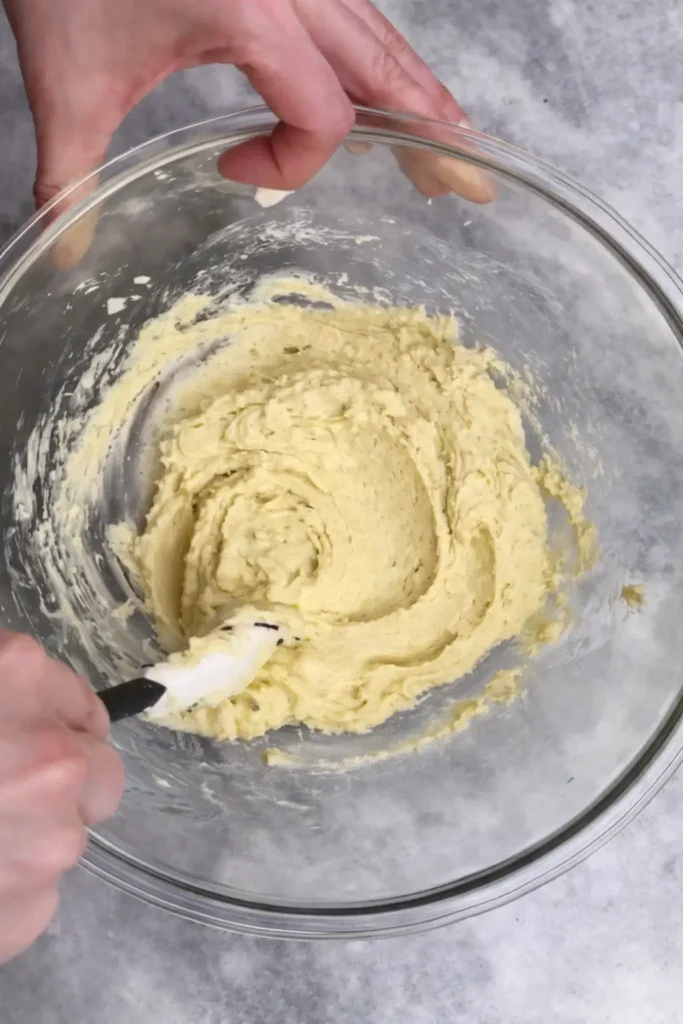 Add the Greek yogurt, egg, melted butter, and cake batter extract. Mix until a thick but scoopable dough forms.